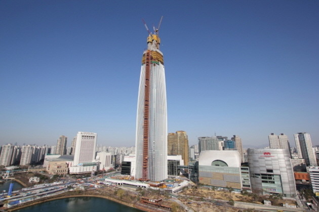 롯데월드타워는 올해 말에 555m 높이에 달하는 외관 공사를 마무리할 예정이다. 약 1년 동안 내부 인테리어 공사를 거쳐 2016년말 완공 목표다.