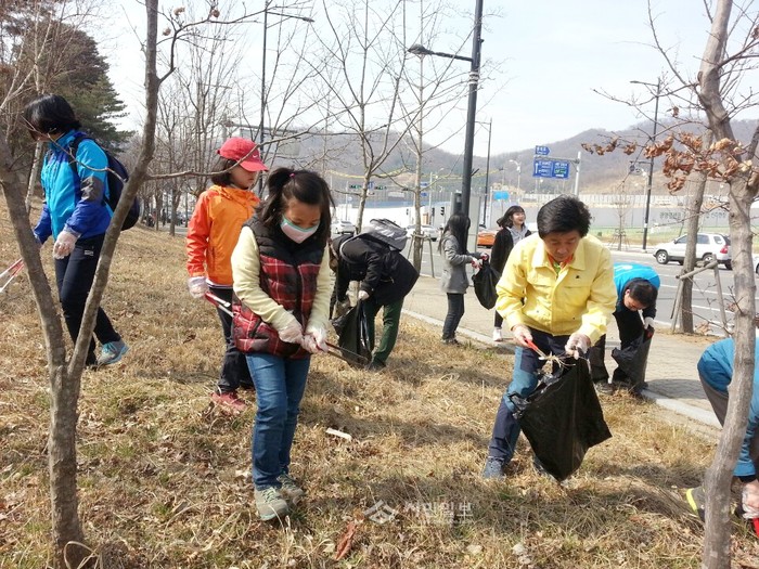 이날 의원들은 버려진 담배꽁초와 겨우내 쌓인 쓰레기를 수거했으며 자원봉사자, 청소년, 시민 등 1200여명이 동참했다.