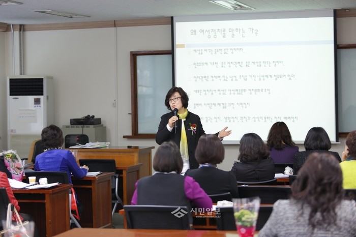 | ▲ 안산시의회 나정숙 기획행정위원장이 지난 26일 안산시여성자치대학에서 '여성의 정치 참여'를 주제로 특강을 실시했다. (사진제공=안산시의회) |