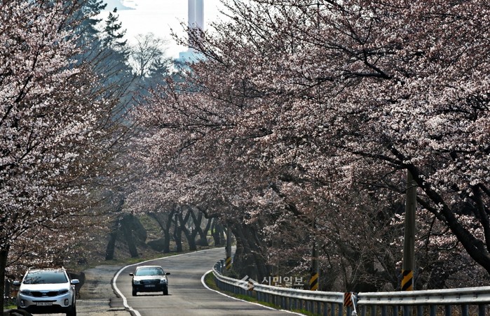 | ▲ 하늘이 차츰 맑아진다는 청명(淸明) 절기를 엿새 남겨둔 30일 오전 경남 남해군 설천면 도로가에 핀 벚꽃이 오후 햇살을 받으며 장관을 이루고 있다. 남해의 벚꽃은 이번 주말쯤 절정을 이 룰 것으로 보인다. | ||