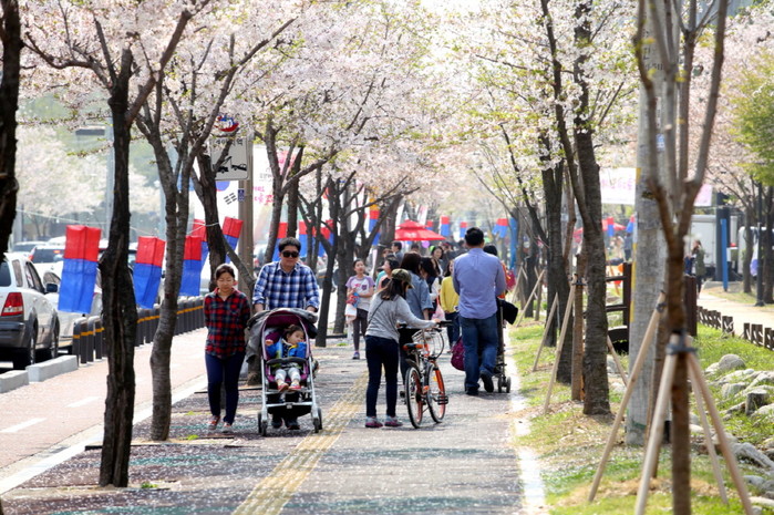 【서울=뉴시스】박주성 기자 = ‘2015 일원동 대청골 왕벚꽃 축제’가 열린 일원동 마루공원 주변에서 시민들이 즐거운 한 때를 보내고 있다. 사진=강남구청 제공)