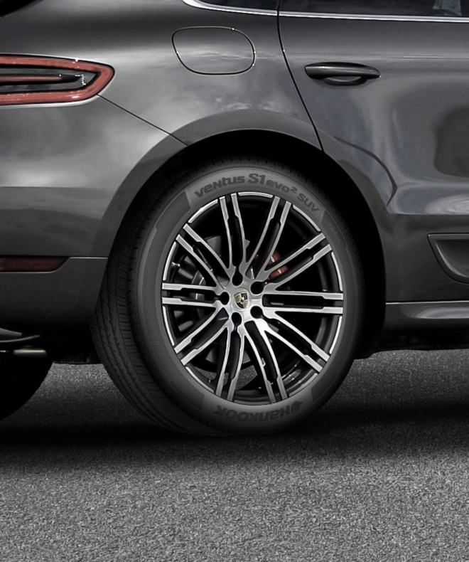 포르쉐 마칸은 극한의 주행에서도 안정적인 접지력과 스포티한 핸들링을 요구하는 세계 최초 전/후륜 이종규격(mixed size)을 도입한 SUV 스포츠카이다. 이번에 한국타이어가 포르쉐에 공급한 벤투스 S1 에보2 SUV는 듀얼 레이어 트래드(Dual Layer Tread)* 기술이 적용되어 전/후륜 이종규격에 최적화된 초고성능 타이어이다.