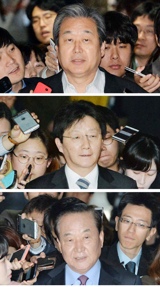 故성완종 전 경남기업 회장 리스트 파문과 관련해 새누리당 지도부가 14일 오후 서울 여의도 국회에서 긴급최고위원회를 열어 김무성(왼쪽부터) 대표, 유승민 원내대표, 서청원 최고위원이 참석하고 있다.