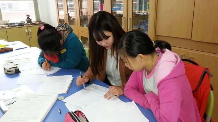 경북 구미시 진평중학교가 최근 교육복지지원사업의 일환으로 '희망을 꿈꾸다' 교육복지 프로그램을 시작했다. 사진은 대학생 멘토가 학생들을 대상으로 학습 멘토링을 진행 중인 모습.(사진제공=구미교육지원청)