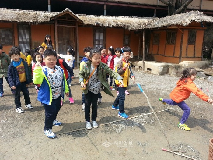 지난 15일 경기 부천시 소사초등학교 1학년 학생들이 파주 쇠꼴마을에서 주제별 체험학습을 실시했다. 사진은 이날 체험학습에 참여한 학생들이 투호던지기를 하고 있는 모습. (사진제공=부천교육지원청)
