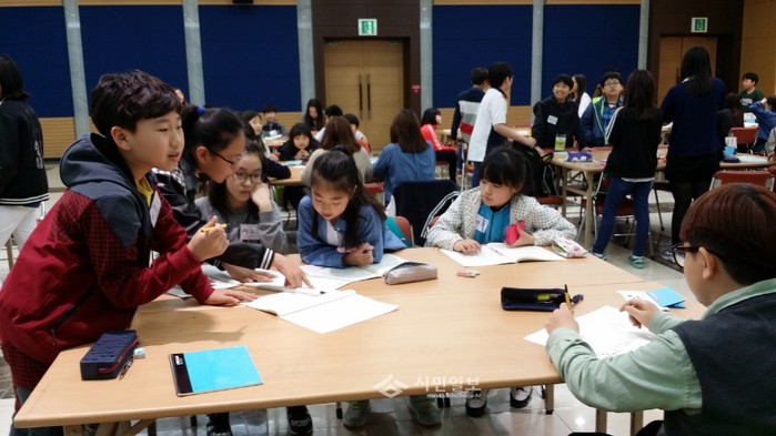경북 구미왕산초 전교 학생회 회장단 학생들이 최근 구미상공회의소에서 개최하는 '어린이회장단 창의적인 리더십 경제교육'에 참여했다. 사진은 이날 참여한 학생들이 '기업가 정신'에 대해 이야기를 나누고 있는 모습. (사진제공=구미교육지원청)