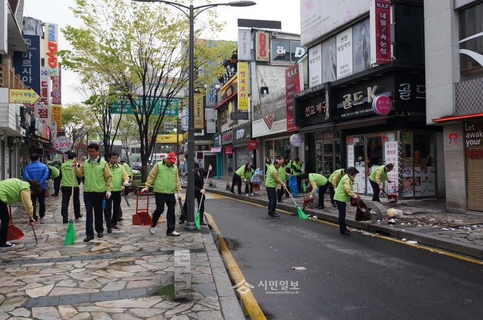 최근 개원 제24주년을 맞은 서울 강동구의회가, 구민을 위한 적극적인 의정활동을 펼칠 것을 다짐한다는 뜻으로, 기념식을 간소화하고 전 의원과 직원이 천호동 로데오거리 일대 대청소를 실시하고 있다.(사진제공=강동구의회)