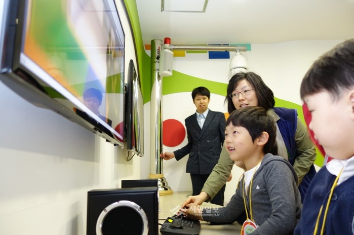 21일 평강어린이집 원생들이 경기 양평군 통합관제센터 안전체험실을 방문했다. 사진은 이날 참여 어린이들이 통합관제센터가 어떻게 운영되는지 배우고 직접 폐쇄회로(CC)TV 등을 조종하는 체험을 하고 있는 모습. (사진제공=양평군청)