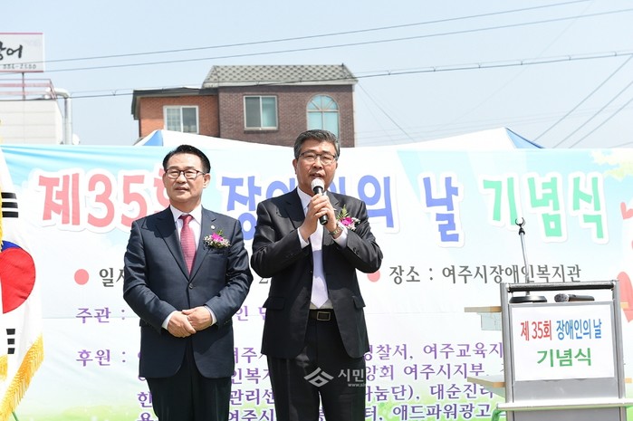 경기 여주시가 지난 21일 여주시장애인복지관에서 '제35회 장애인의 날' 기념 행사를 개최했다. 사진은 이날 행사에 참여한 원경희 시장의 모습. (사진제공=여주시청)