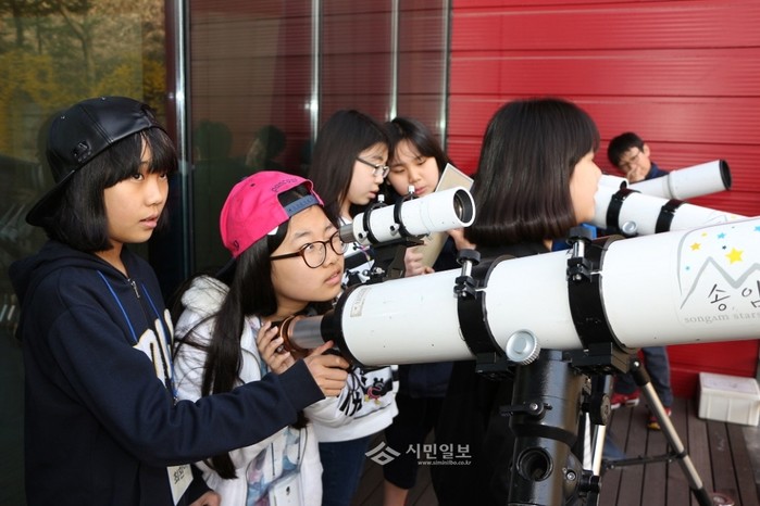 경북 구미시 형곡초등학교가 송암 스페이스센터에서 최근 6학년 학생들을 대상으로 테마형 체험학습을 실시했다. 사진은 체험학습에서 학생들이 망원경을 들여다 보고 있는 모습. (사진제공=구미교육지원청)