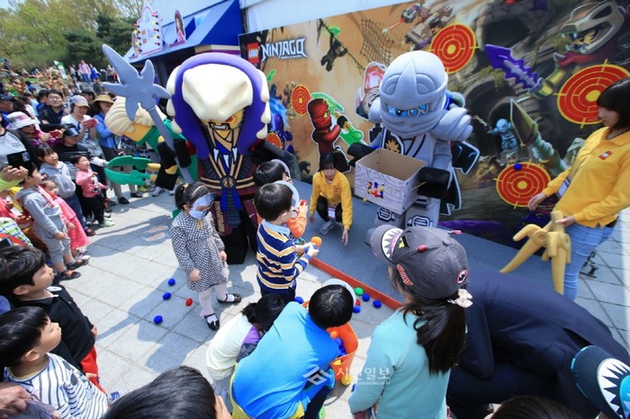 지난 26일 경기 고양시에서 열린 '2015고양국제꽃박람회'를 찾은 어린이들이 무료로 운영된 레고놀이 체험관의 '공 던지기' 이벤트에 참여해 즐거운 시간을 보내고 있다. (사진제공=고양시청)