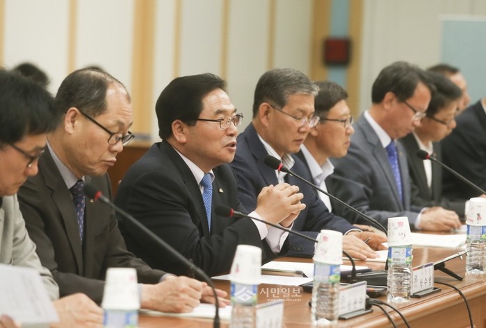 대전 대덕구가 지난달 30일 민선6기 공약사업 성실이행 여부의 객관적 평가를 위한 주민평가단 회의를 진행했다. 사진은 이날 회의에 참석한 박수범 구청장(왼쪽에서 세 번째)과 관계자들의 모습. (사진제공=대덕구청)