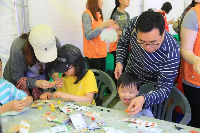 경기 과천시가 어린이날을 맞이해 지난 5일 중앙공원 일대에서 '과천어린이축제'를 개최했다. 사진은 이날 축제에 참여한 한 가족이 소프트 양초 만들기 체험을 진행 중인 모습. (사진제공=과천시청)