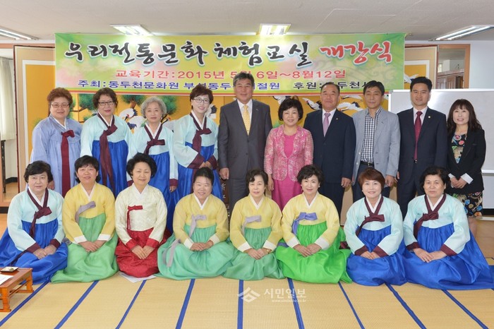 경기 동두천문화원부설 동두천예절원이 지난 6일 동두천예절원 광암교육관에서 우리전통문화체험교실 개강식을 실시해 오세창 동두천시장(뒷줄 가운데)과 예절원 관계자들이 기념촬영을 하고 있다. (사진제공=동두천시청)