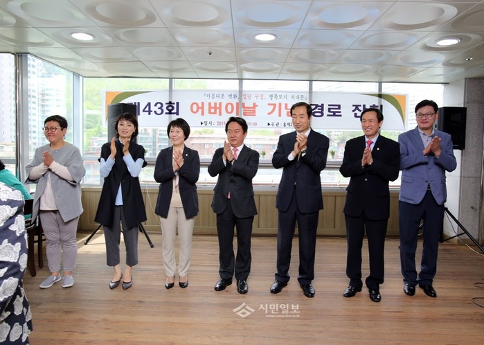 서울 서대문구의회가 지난 6일 홍제동2동 주민센터에서 '제43회 어버이날 기념 경로잔치'를 개최해 박경희 의원, 이경선 의원, 김혜미 의원, 문석진 서대문구청장 등 관계자들이 참석해 노인들에게 인사말을 전하고 있다. (사진제공=서대문구의회)