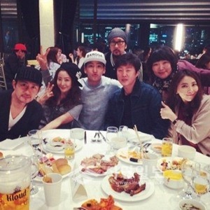 사진 속에는 앵그리맘에 출연한 배우들이 함께 즐거운 한 때를 보내고 있는 모습이 담겨 있고, 바로는 티셔츠에 하얀색 모자를 써 패션 감각을 선보였다.
