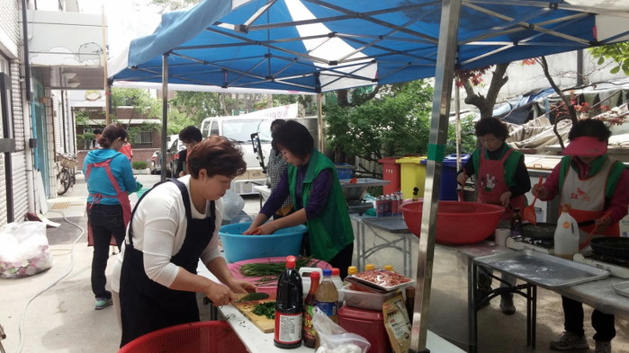경기 부천시 원미2동 새마을부녀회가 최근 주민센터에서 취약계층 노인 50명에게 제공할 밑반찬을 만들어 제공했다. 사진은 이날 참여한 부녀회 회원들이 밑반찬을 만들고 있는 모습. (사진제공=부천시청)