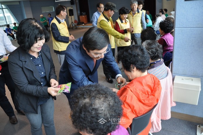 최근 서울 도봉구 창5동에서 어버이날을 맞아 주민센터에서 운영 중인 교양강좌 '타이치'를 수강하는 노인들에게 카네이션을 달아주는 행사가 열린 가운데 이동진 도봉구청장이 직접 꽃을 달아주며 감사의 마음을 전하고 있다. (사진제공=도봉구청)