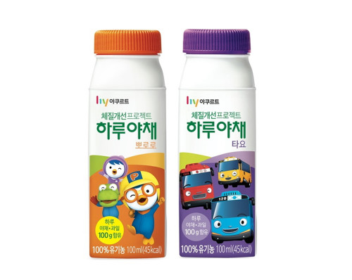 한국야쿠르트는 하루야채 키즈(뽀로로, 타요)에 8가지 녹황색 채소를 추가하여 더욱 건강한 제품으로 리뉴얼했다.
