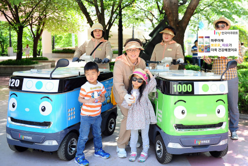 한국야쿠르트는 하루야채 키즈 리뉴얼에 맞춰 야쿠르트아줌마의 전동카트를 ‘타요버스’로 단장했다.