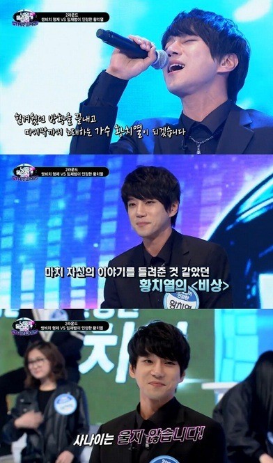 이날 황치열은 '비상'을 불러 무대를 압도했고, MC이특은 "노래 가사가 황치열의 이야기"라며 "9년간 무명의 설움이 무대에 녹아들었다"고 호평했다.