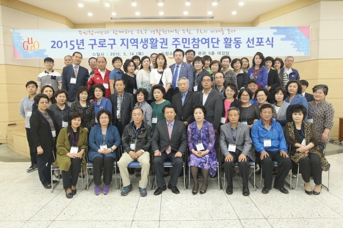 최근 서울 구로구청 강당에서 지역의 특성과 현황을 잘 아는 지역주민들의 의견을 반영해 상향식 도시계획을 수립하기 위해 구성된 ‘지역생활권계획 주민참여단’이 ‘지역생활권계획 주민참여단 활동선포식’을 마치고 기념촬영을 하고 있다.