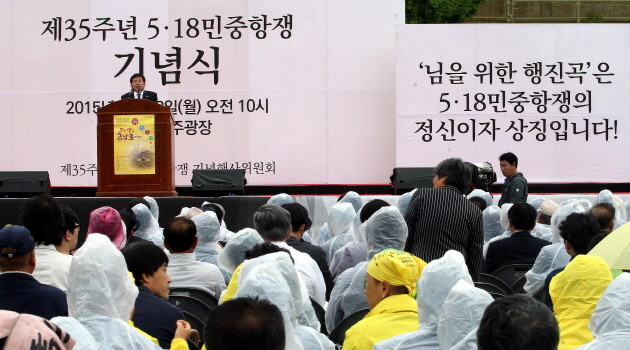 18일 오전 광주 동구 옛 전남도청 앞 민주평화광장에서 5·18민중항쟁 기념행사위원회가 5·18민중항쟁 35주년 기념식을 열고 있다.