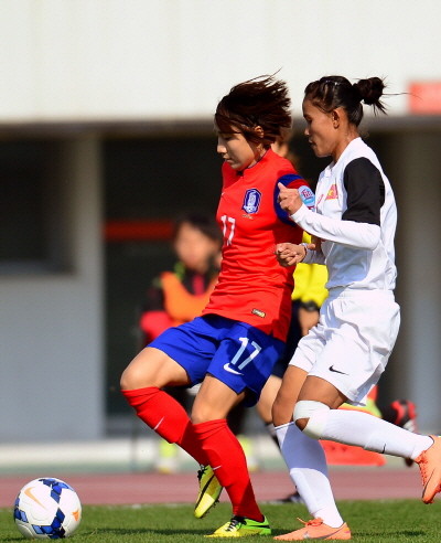 | ▲ 지난 8일 오후 경기도 파주시 문산읍 내포리 파주공설운동장에서 열린 대한민국 여자 축구 국가대표팀과 베트남의 아시안컵 대비 연습경기에서 대한민국 여민지가 돌파 하고 있다. /뉴시스 | ||