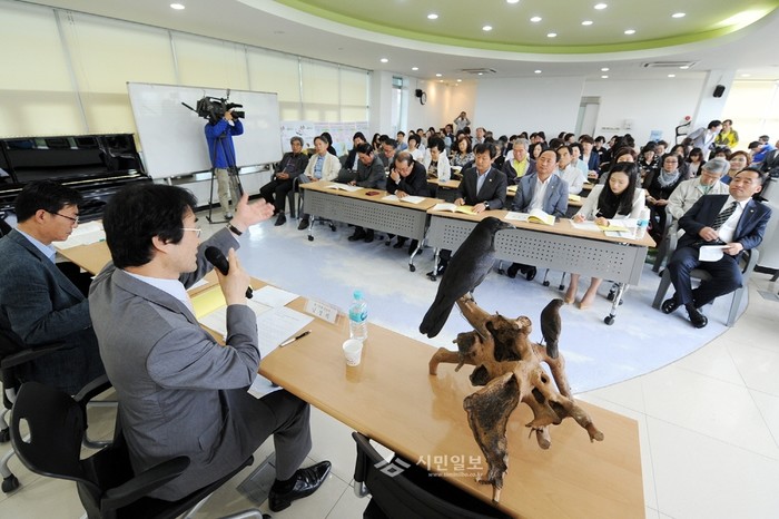 경기 오산시가 19일 오전 오산문화원에서 '오산시 상징물 변경을 위한 심포지엄'을 개최해 전문가 패널들이 참가자들의 질문에 답하고 있다. (사진제공=오산시청)