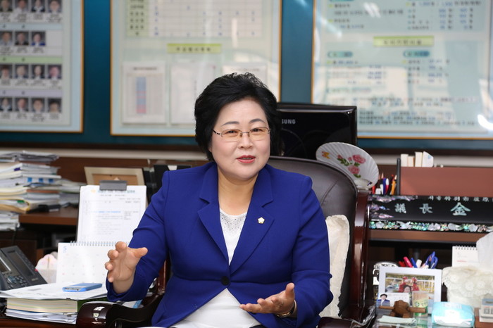 | ▲ 서울 노원구의회 김승애 의장은 20일 시민일보와의 인터뷰에서 어렵고 힘없는 이들을 지켜주는 어머니 같은 존재가 되고 싶다고 바람을 밝혔다. 사진은 김승애 의장이 인터뷰 중인 모습.(사진제공=노원구의회) | ||
