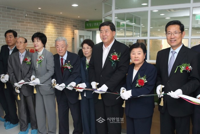 지난 20일 조길형 서울 영등포구청장(가운데)과 박정자 영등포구의회 의장(오른쪽에서 두 번째), 관계자 등이 영등포구 구립치매전문데이케어센터 개관식에 참석해 테이프 커팅식을 진행하고 있다.(사진제공=영등포구청)