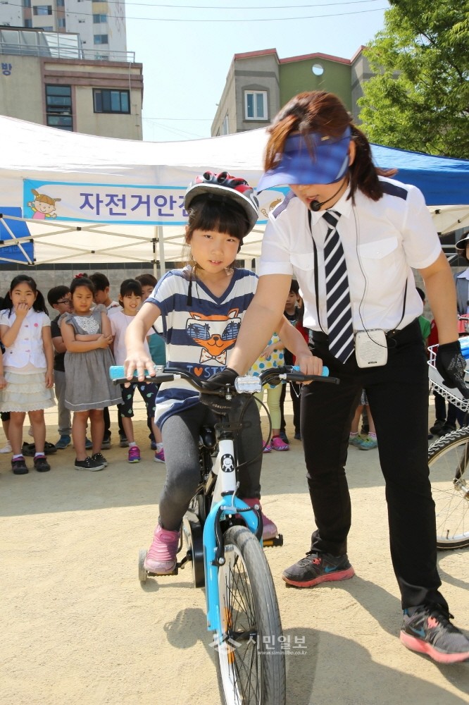 지난 22일 서울 송파구 마천초등학교에서 열린 '2015 찾아가는 어린이 안전체험캠프'에 참가한 학생들이 자전거안전 체험 실습을 하고 있다. (사진제공=송파구청)
