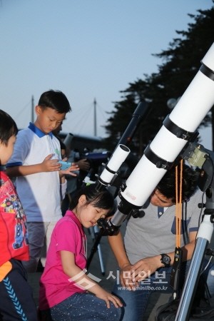 서울 마포구 월드컵공원 평화의 광장에서 열린 '마포가족 별빛축제'내 '별빛마당' 프로그램에 참가한 아이들이 천체 망원경을 통해 달, 수성, 목성 등 별과 행성을 관찰하고 있다. 이날 행사에서는 천체 망원경으로 도심속 어린이들에게 별을 직접 볼 수 있는 체험을 제공했다. (사진제공=마포구청)