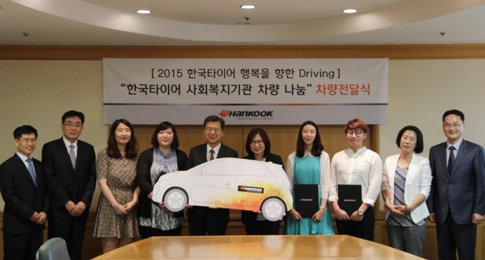 한국타이어는 지난 3월 공모를 통해 차량 지원을 희망한 전국 705 개 사회복지기관 중 최종 40개 기관을 선정, 경차(모닝) 각 1대씩을 전달하여, 2008년부터 총 307대의 차량을 사회복지기관에 기증하게 되었다. 이날 전달식에는 한국타이어 대표이사 서승화 부회장을 비롯하여 3개 사회복지기관의 대표들이 참석하여 자리를 빛냈다.