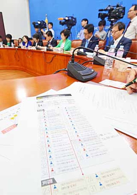 새정치민주연합 메르스 대책특위 회의가 열린 4일 오후 서울 여의도 국회 당 대표회의실 탁자에 메르스 환자 현황이 놓여 있다.