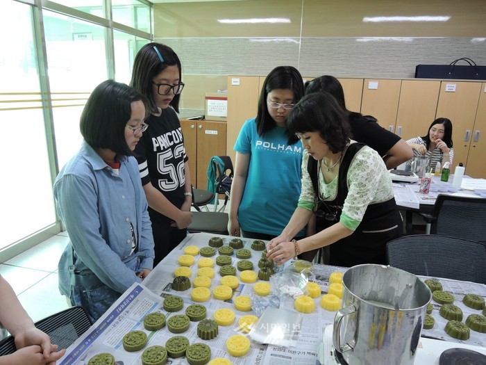 인천시 연수구 송도2동 주민자치위원회는 최근 '사랑의 천연 비누 만들기 나눔 행사'를 실시했다. 사진은 이날 행사에 참여한 자원봉사자들이 천연 수제비누를 만들고 있는 모습.