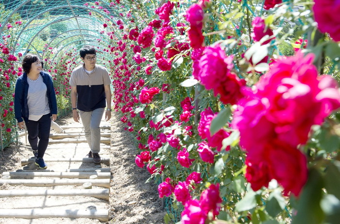 넝쿨장미 만개한 제천 금성 장미터널