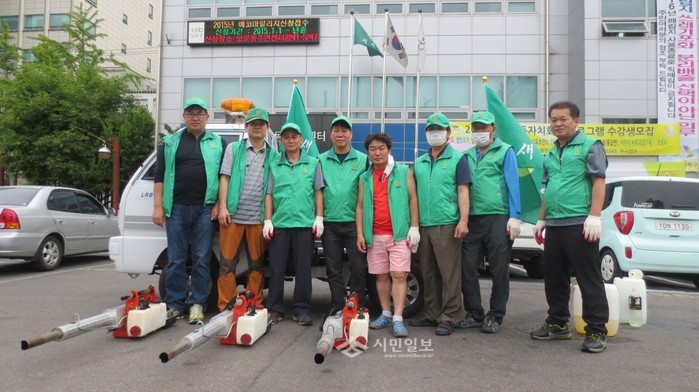 서울 성북구 보문동의 새마을지도자협의회 방역 봉사단이 최근 '마을안전 동아리' 활동의 일환으로 6월 방역사업의 시작을 알리며, 극성맞은 모기 등을 퇴치하고자 연무방역에 땀방울을 흘리고 있다. 사진은 새마을지도자협의회 방역 봉사단의 모습.(사진제공=성북구청)