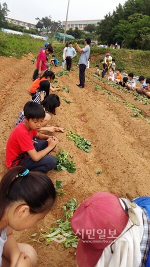 전남 나주북초등학교가 최근 전교생이 참여하는 '고구마 심기' 행사를 실시한 가운데 참여 학생들이 학교 운동장 옆에 조성된 텃밭에 고구마를 심고 있다. (사진제공=전남교육지원청)