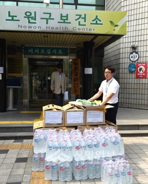 노원구는 지난 9일 외부 출입이 불가한 자택격리자들에게 약 300만원의 예산을 긴급 투입해 쌀, 라면, 통조림, 치약, 칫솔, 생수 등의 생필품을 전달하기로 했다. 사진은 구 관계자가 메르스 자택격리자들에게 전달하기 위한 생필품 박스를 옮기고 있는 모습. (사진제공=노원구청)