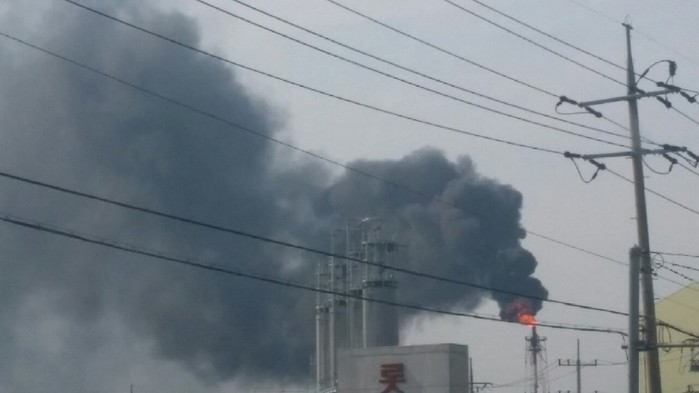 여수산단 대림석유화학 용성공장에서 검은 매연 분출