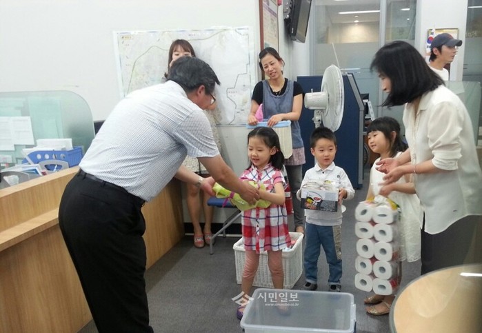 최근 은평구 한 어린이집에서 녹번동 주민센터를 찾아 은평푸드마켓에 후원물품으로 전달할 라면, 치약 등을 기탁했다. 사진은 후원물품을 전달하는 어린이들의 모습. (사진제공=은평구청)