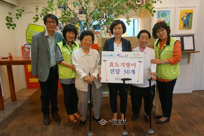 경기 부천희망재단은 최근 지팡이 제작 전문업체 '동경'과 효도 삼발 지팡이 전달식을 열고 부천시독거노인지원센터를 통해 홀몸노인들에게 지팡이를 전달했다. 사진은 이날 전달식에서 노인들과 관계자들이 함께 기념촬영한 모습.(사진제공=부천시청)