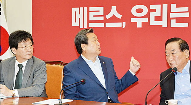 11일 오전 서울 여의도 국회 새누리당 대표실에서 열린 최고위원 회의에서 김무성 대표가 메르스 관련 이야기를 하고 있다.