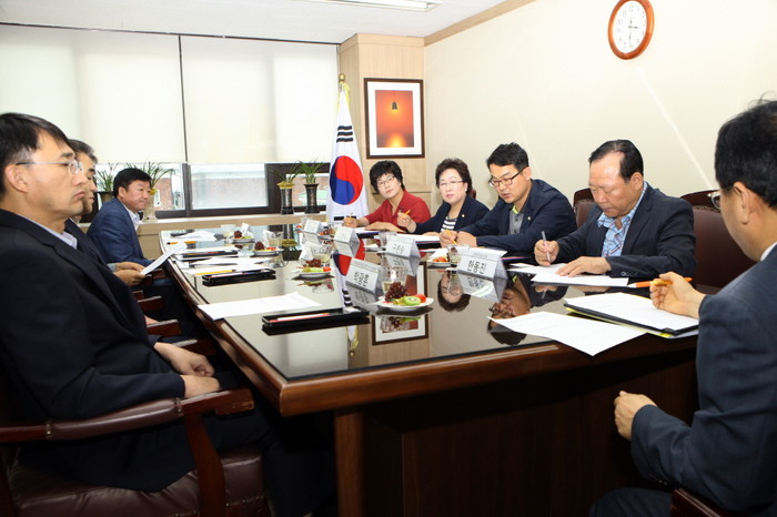 서울 강북구의회 학교폭력 대책 및 교육지원 특별위원회(위원장 김명숙) 위원들은 최근 성북교육지원청에서 방문간담회를 열고, 교육지원청 관계자들이 참여한 가운데 학교폭력 예방대책을 비롯해 최근 대두된 메르스 예방을 위한 학교시설 방역에 관한 사항들을 심도 있게 논의했다. 사진은 간담회에 참석한 유인애·김명숙·구본승·한동진 의원과 교육지원청 관계자들의 모습. (사진제공=강북구의회)
