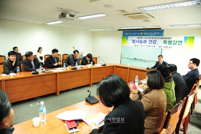 | ▲ 방사능안전특위 위원들이 지난 2월 실시된 방사능의 위험이 식품에 미치는 영향과 안전한 먹거리를 위한 대처방안 등의 내용으로 진행된 ‘방사능과 건강’ 특강을 듣고 있다. | ||