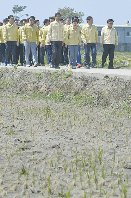 박근혜 대통령이 21일 오전 인천 강화군 화도면 흥왕리를 찾아 유정복 시장, 이상복 군수 등에게 가뭄 피해 현황에 대한 보고를 받고 있다.