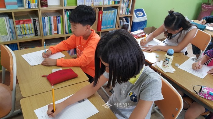 충남 아산남성초등학교가 6월 호국보훈의 달을 맞아 최근 학생들을 대상으로 '나라사랑 편지쓰기대회'를 실시했다. 사진은 참여 학생들이 국군장병들을 위한 감사편지를 쓰고 있는 모습. (사진제공=아산교육지원청)