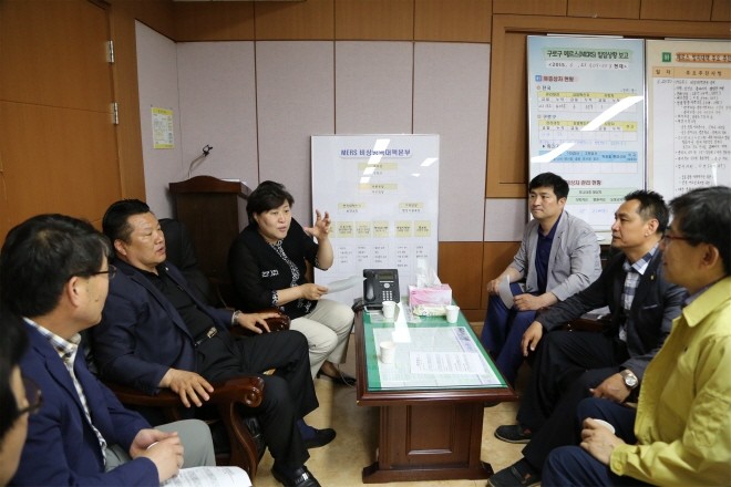[시민일보=이대우 기자]서울 구로구의회(의장 김명조)가 최근 구 보건소 9층에 마련된 메르스 비상방역대책본부를 방문, 중동호흡기증후군(MERS·메르스) 대응방안에 대해 논의하고 관계자들을 격려했다.