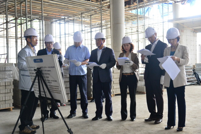 공사현장을 둘러본 의원들은 우기 공사잔재 외부 유출 가능성, 공사장 수해방지 대비책, 추가 발생 금액 부담 소재, 공사 재개시 업체 선정 문제 등에 대해 질문했다.